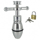 - 先端開口型のスチール製アナルプラグ。プラグ型を保持する為の輪ゴムを取り外したらアナルへ挿入し、底部のリングを移動させれば先端のプラグが開き、ガッチリとアナル内で保持されます。先端の開口を保持する為に南京錠(付属)を取り付ければ、アナルの拘束は完了です!